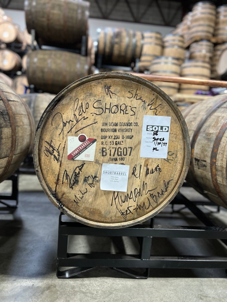 The day was filled with excitement as we tasted about 12 different barrels, sourced from some of the finest: OZ Tyler, Beam, and Heaven Hill. The conversations flowed, and with each sip, we discovered more than just the unique profiles of these barrels—we discovered each other. A strong contender was an OZ Tyler barrel that captured the group’s attention, but it was a Beam barrel, coming in around 117 proof and an age of 6+ years, that ultimately stole our hearts. It had the same mashbill as Booker’s, and we knew it would resonate with bourbon lovers, especially since Shortbarrel was still new to Florida at the time.